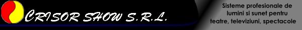 Sisteme profesionale de sunet si lumini pentru teatre, discoteci, spectacoleCRISOR SHOW s.r.l.Sisteme profesionale de sunet si lumini pentru teatre, discoteci, spectacoleDistributie si Reprezentanta firme profesionale:Compulite R&D, Kupo, Lightronics, Griven, Geni,Neo-Neon, Lite-Puter, Allen&Heath, Turbosound, DasAudio, Ram Audio,Chevin Research, Ad-Systems,Musica Pro, Axxent
